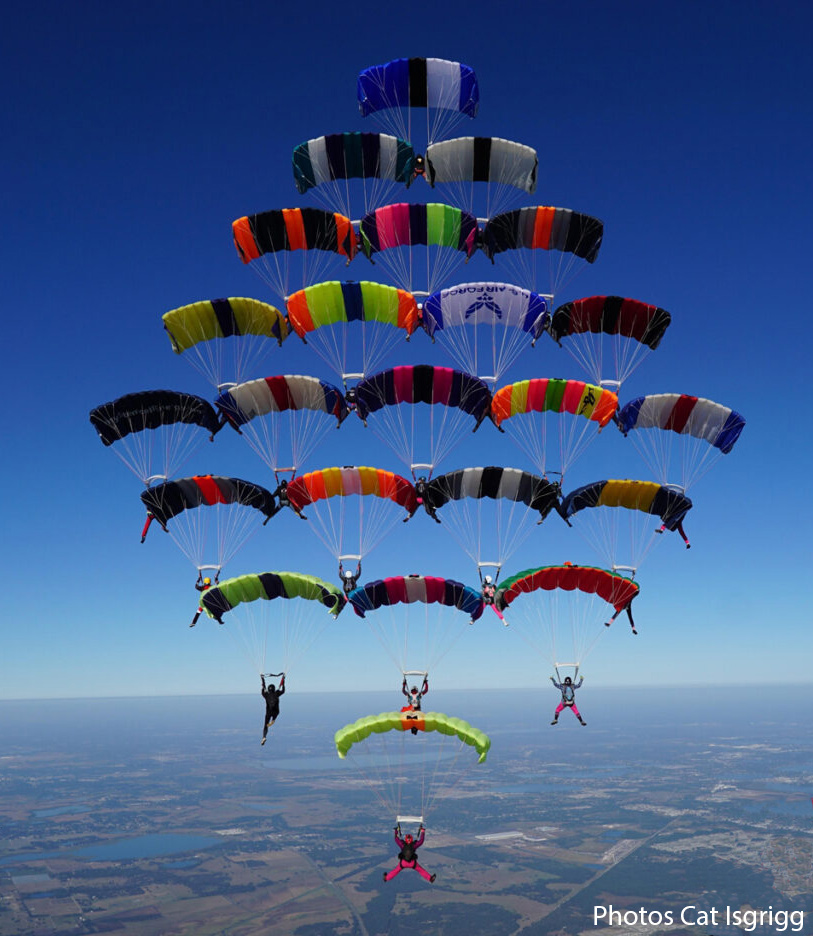 Forte de leurs trois records mondiaux, l’équipe féminine a démontré à l’ensemble du groupe qu’elle constitue un atout solide. Certains parachutistes masculins n’ont d’ailleurs pas hésité à leur témoigner admiration et confiance.