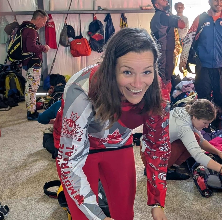 Corinne Paquette, parachutiste sportive qui a débuté le sport au Québec avant de revenir en France. Corinne a également eu la chance d'accompagner son conjoint Sean Paquette à travers le monde lors de grands évènements de parachutisme, dans les disciplines du voile contact et du vol relatif à 4.