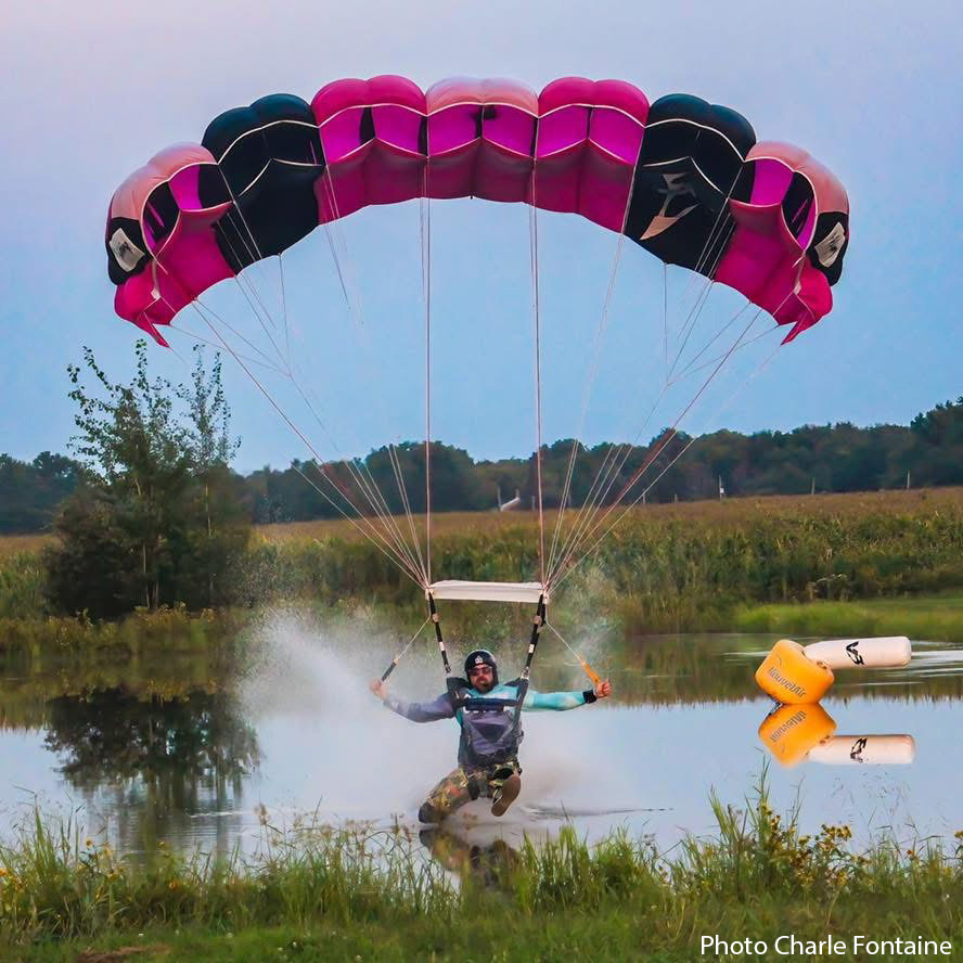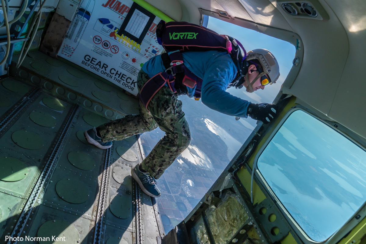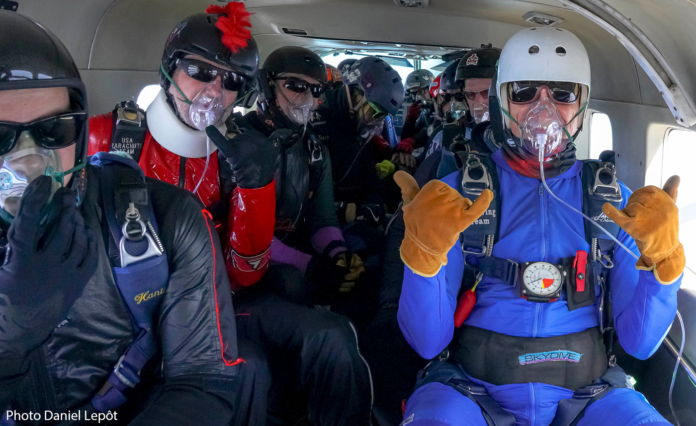 Sean Paquette : Le premier avion larguait 9 parachutistes à 19 500 pieds (environ 6000 mètres), ils étaient équipés en oxygène à bord et embarqué (pour pouvoir respirer sous voile).
