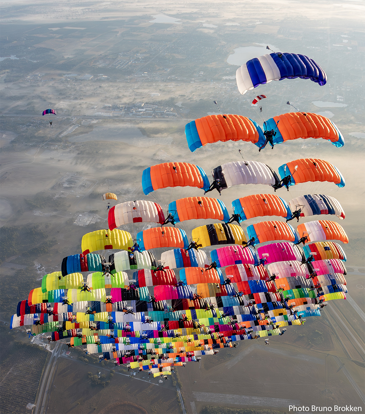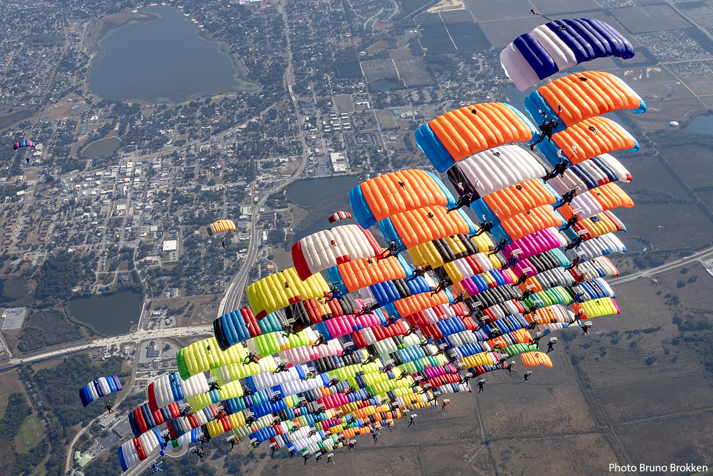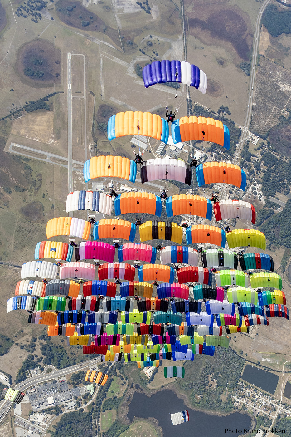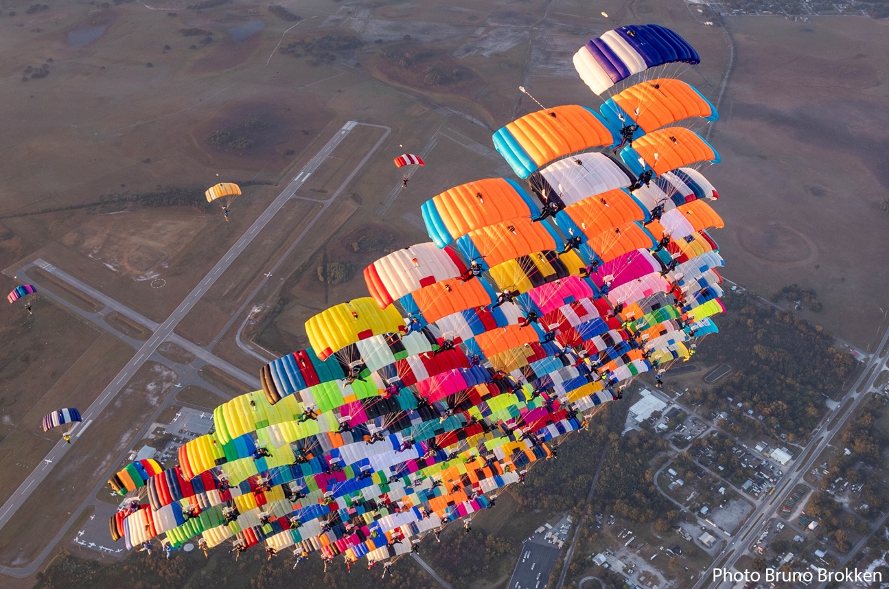 Ils étaient plus de 130 parachutistes du monde entier à avoir fait le déplacement en Floride, à Lake Wales pour participer à ces tentatives. Un événement qui était aussi le plus grand regroupement de la discipline derrière le SpringFling*, évènement de voile contact organisé tous les ans à Skydive Sebastian en Floride, au mois de mars, et qui regroupe plus de 100 participants sur deux semaines.