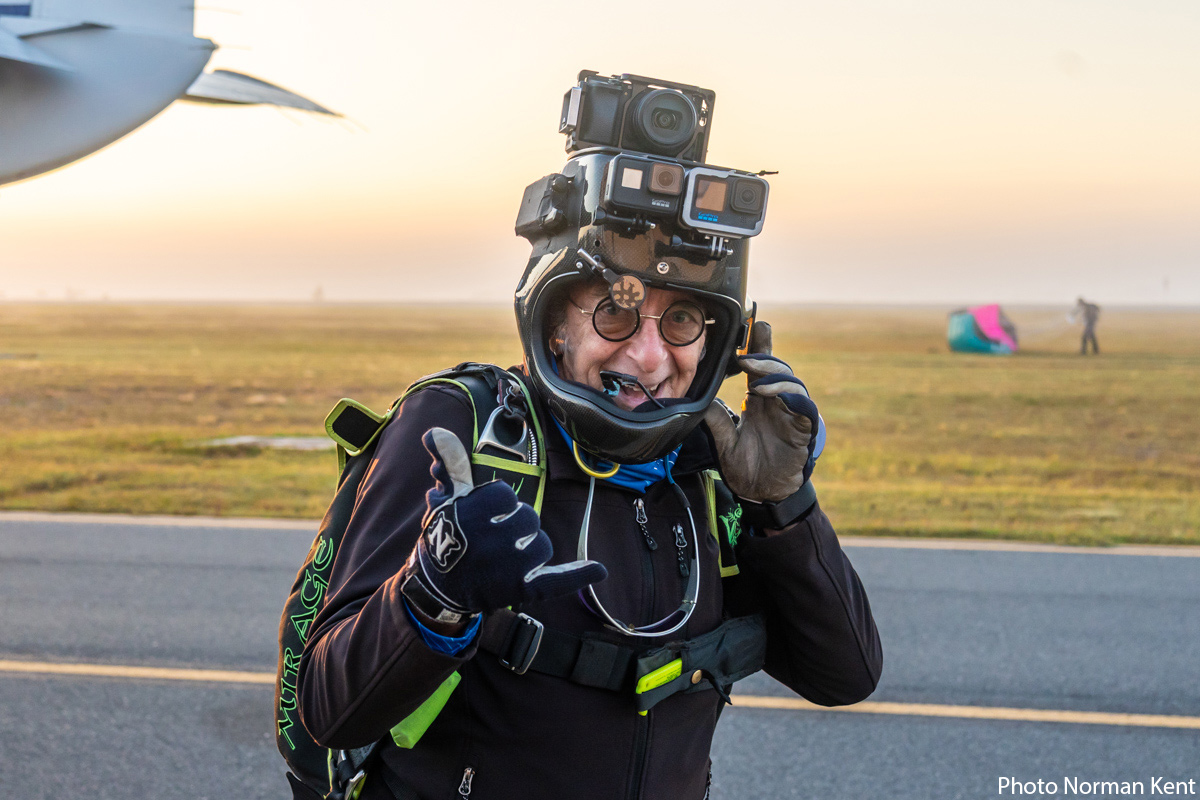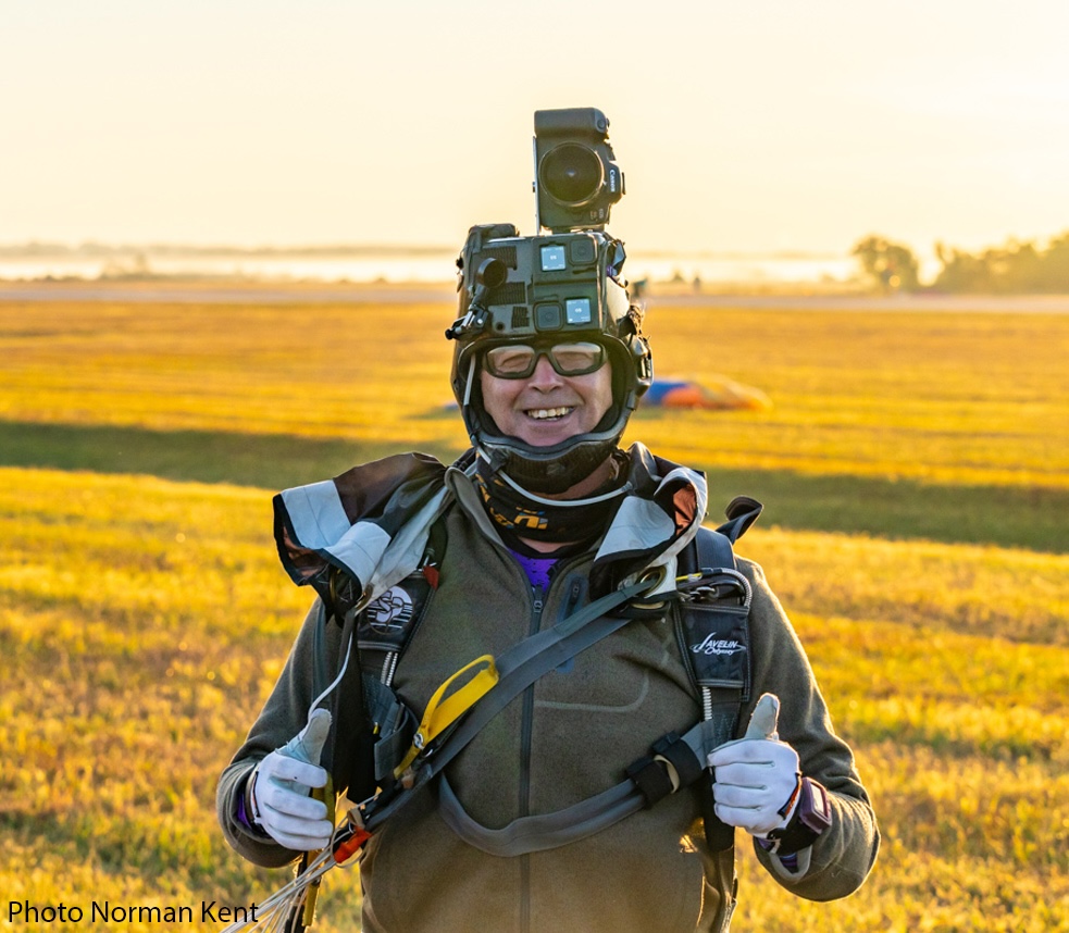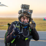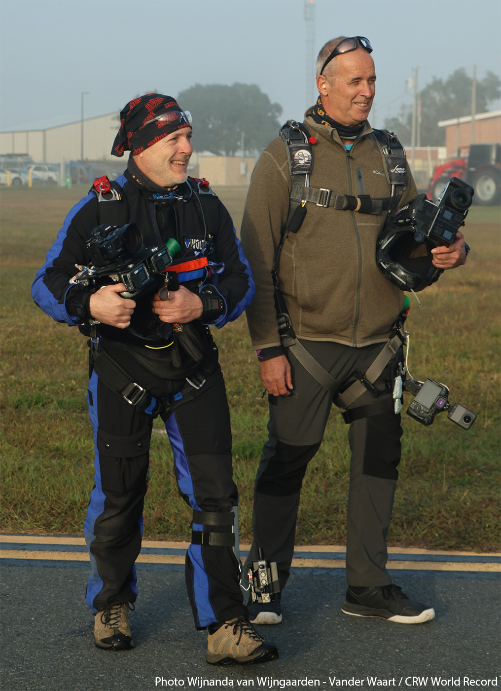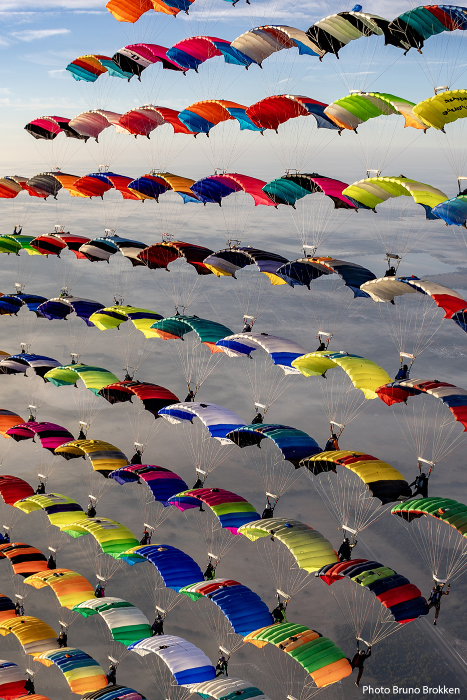 À mesure que le jour approchait, j'étais de plus en plus convaincu que ce serait le cas. La veille, j'ai passé plus de temps que d'habitude avec mon casque de prise de vues pour effectuer les derniers réglages. Le lendemain matin, alors que je me préparais au sol avant le saut, je me sentais tout excité, car je savais que le record allait être battu. C'était un sentiment très différent de celui que j'avais éprouvé lors des autres sauts de la semaine... Après être sorti de l'avion et avoir attendu seul devant la formation, j'ai regardé ma caméra embarquée 360° et j'ai dit : « Mercredi, j'ai eu le pressentiment que le record serait battu lors du saut de ce matin, voyons comment cela se passe... ». Comme prévu, peu après, j'ai vu la formation se compléter et j'ai entendu Brian Pangburn dire à la radio : « complet, complet ». Je me suis élancé, déclenchant plusieurs caméras à volonté... Des images incroyables... Une sensation incroyable... Un nouveau record du monde, et j'en faisais partie ! J'adore avoir cette relation avec l'énergie et l'intuition, mes photographies ne sont qu'une représentation de cette belle connexion... Je suis un homme chanceux !