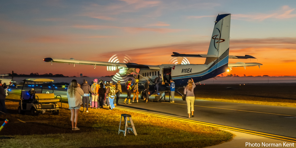En raison d’un brouillard matinal et d’une maintenance avec l’oxygène sur l’avion de tête, le décollage a dû être reporté à 8h au lieu de 6h30 habituellement. Malheureusement, un seul saut sera réalisable pour ce dernier jour.