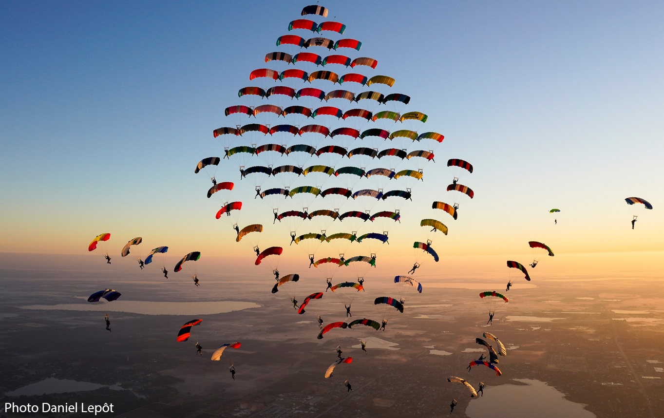 Et ils l’ont fait ! Encore ! Le 23 novembre aux premières lueurs du soleil, les "CRW Dogs" comme on les appelle aux États-Unis, ont complété haut la main leur objectif de 104 voiles. Un saut validé par les juges sur place et pour lequel la validation en tant que record est en cours auprès de la FAI.