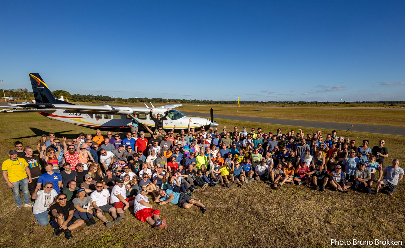 Pas de record sans images ! Les cameramen en vol (de gauche à droite) : Bruno Brokken, Matt Faivre, Daniel Lepôt, Cat Isgrigg, Chico Tomaselli, Norman Kent, Gustavo Cabana. Photo Wijnanda van Wijngaarden - Vander Waart