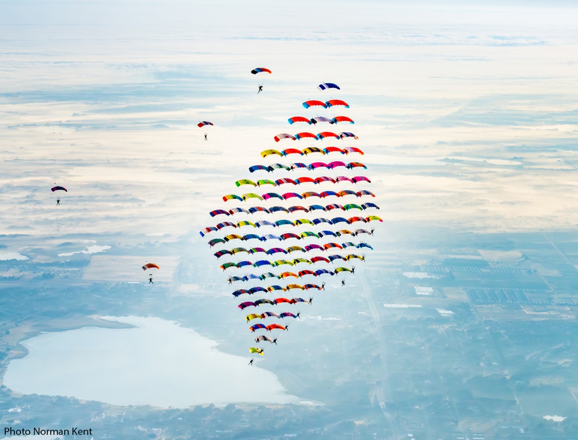 Pendant longtemps, construire une formation de plus de 100 parachutistes semblait impossible, mais le développement de nouvelles techniques et une approche plus moderne dans la discipline ont permis de donner vie au projet.
