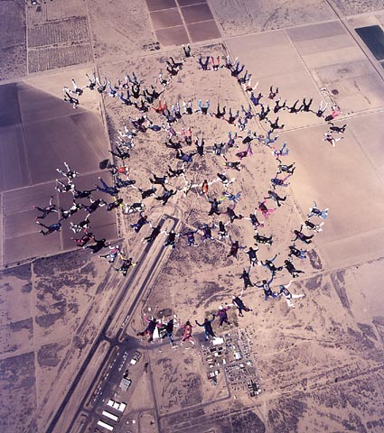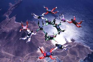 les sauts de grande formation et le vol relatif en nombre. Le parachutisme