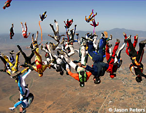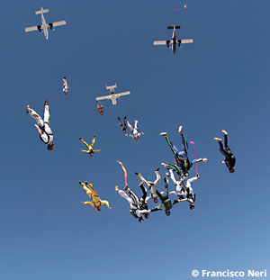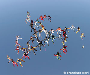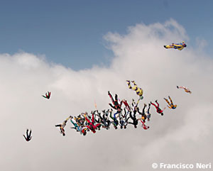 En passant de 24 à 42, lactuel record de free-fly a pratiquement doublé son "volume" en un an, atteignant ce qui est considéré aussi comme une "grande formation" en vol relatif. Ce qui était à peine imaginable il y a encore quelques années devient plus que probable : la barre des 50 sera certainement dépassée dans un futur proche.