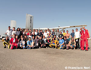 Alchemy a donc décidé de remettre ça cette année et une quinzaine de sauts de tentatives ont eu lieu du 29 avril au 1er mai dernier sur le centre de Perris Valley Skydiving. Durant les quelques jours précédant les tentatives de record, Alchemy a organisé un rassemblement afin de réaliser des sauts dont la technique était orientée vers le vol en formation. Par petits groupes, les participants se sont ainsi familiarisés avec le concept appliqué durant les tentatives. "Le premier record à 39 a été réussi dès le premier jour, lors du troisième saut, le 42 sest construit le lendemain et une tentative à 45 était presque réussie le samedi, mais les juges ne pouvaient voir toutes les prises avec certitude" précise Cathy. "La configuration de la sortie davion était similaire à celle des sauts de vol relatif en nombre. Le Skyvan volait en leader et il était suivi des deux Twin otter. Laltitude de largage étaient de 5000 mètres. La base à six se tenait sur la tranche arrière de lavion leader pour sortir en étoile accrochée. Quelques flotteurs et une majorité de piqueurs étaient placés dans les avions en fonction de leur approche vers la figure. On a eu du mal à se caler dans les premiers sauts mais ensuite on a bien trouvé le timing du départ." "Nous partions quelques secondes avant la base, ce qui nous faisait gagner du temps dans nos approches. La construction de la figure se réalisait de la façon suivante : trois "pods" (2) de cinq free-flyers venaient se connecter sur la base, puis les "stingers" (3) venaient se connecter sur les pods pour compléter la formation, soit par lignes de trois, soit en solo." "Nous navons pas rencontré de problèmes particuliers, chacun était le plus souvent à sa place. Une fois grippés, nous avons subis parfois quelques vagues auxquelles il fallait résister. La séparation seffectuait en trois temps : départ des stingers à 6500 pieds (environ 2000 mètres) avec track jusqu'à 3000 pieds, puis départ des pods à 5500 pieds et ensuite la base à 4500 pieds. Le départ en dérive se faisait après un demi-tour à 180 degrés vers lextérieur. Lambiance était assez sérieuse et le stress était présent à chaque saut, comme dans toute tentative de record. Je suis super contente davoir participé à ce record du monde et davoir volé parmi les meilleurs ! Et jespère pouvoir en refaire partie lannée prochaine !!" A noter que Cathy avait déjà participé à un record du même genre en décembre 2003 à Eloy (Arizona) : une formation à 16 "tête en bas" exclusivement féminine. Pour ces records à 39 et 42, Cathy était à chaque fois en stinger sur lextérieur de la figure. Il y avait cinq autres filles dans ces records. En plus de léquipe Alchemy (Rook Nelson et Mike Swanson, champions du monde de free-fly et organisateurs du record), on trouve évidemment quelques célébrités du free-fly dans ce record. Certains sont connus en Europe pour y avoir participé à des boogies ou compétitions : Omar Alhegelan, Charles Bryan, Eli Thompson, Mike Ortiz, Fritz Pfnur, etc. Il convient dadresser ici un coup de chapeau particulier à Charles Brian qui est le seul parachutiste à avoir participé aux deux actuels records de grande formation : le 357 en vol relatif et le 42 en free-fly. Et à chaque fois il se trouvait dans la base, ce qui nest pas la place la plus facile ! Capturer ces records en images photos numériques est aussi remarquable et nous avons choisi dillustrer largement cette édition de juin avec les photos de Francisco Neri et Jason Peters.