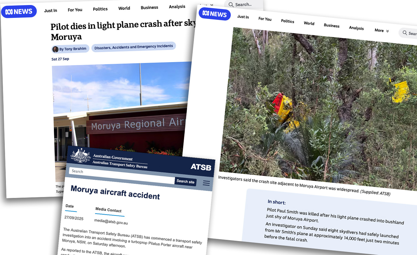 La communauté parachutiste australienne est très touchée par cette disparition et une cérémonie d'hommage est programmée le 16 octobre à Moruya. ◼︎