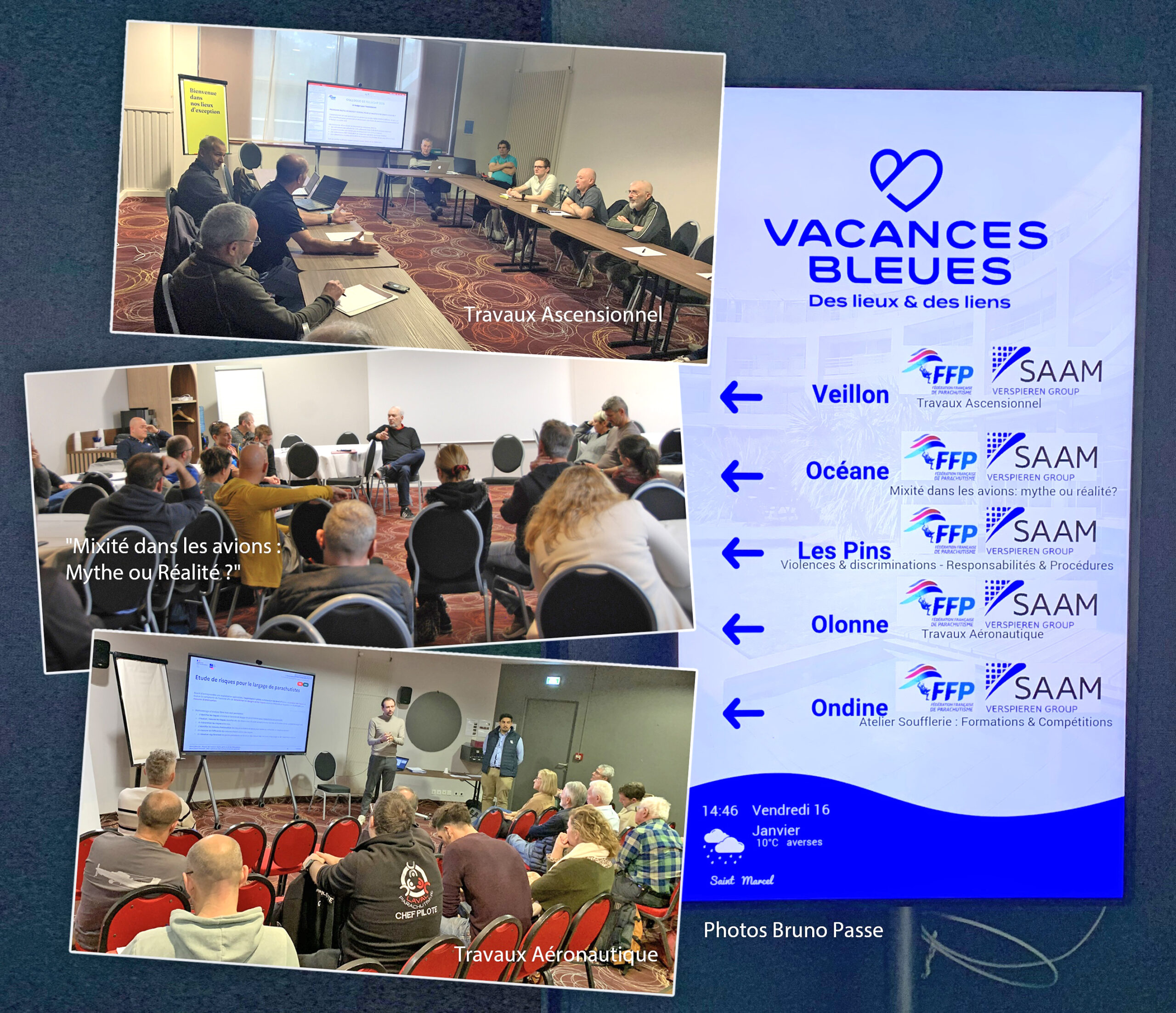 Le samedi après-midi, les 200 participants avaient de nouveau rendez-vous tous ensemble en salle plénière pour un dernier programme en cinq volets : retour de l'atelier "technique et DT", violences sexistes et sexuelles dans le sport, aéronautique, Handifly et World Series, ascensionnel.