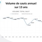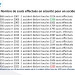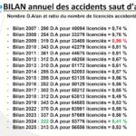 En 2024, le ratio annuel entre le nombre de déclarations d'accidents et le nombre de licenciés accidentés, était le plus faible depuis une quinzaine d'années : 0,41% . En 2025, avec 313 déclarations d'accident pour 56.556 licenciés, il est remonté à 0,53% (voir schéma 1 ci-dessous). Même observation pour le ratio du nombre de sauts effectués en sécurité pour un accident qui est de un accident déclaré tous les 1525 sauts effectués sur un total de 477.416 sauts (voir schéma 2 ci-dessous, en 2008 : un accident déclaré tous les 2336 sauts effectués sur un total de 593.368 sauts).