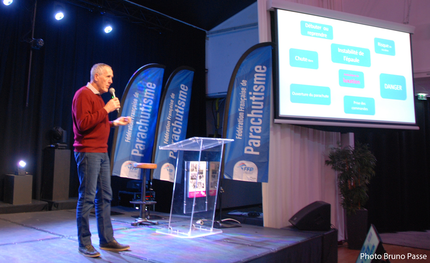 Il est revenu sur la problématique fréquente des luxations de l’épaule — y compris celles survenues avant le début de la pratique du parachutisme — afin de rappeler les précautions à prendre pour sauter en toute sécurité et prévenir les encadrants de certains risques liés à ce traumatisme.