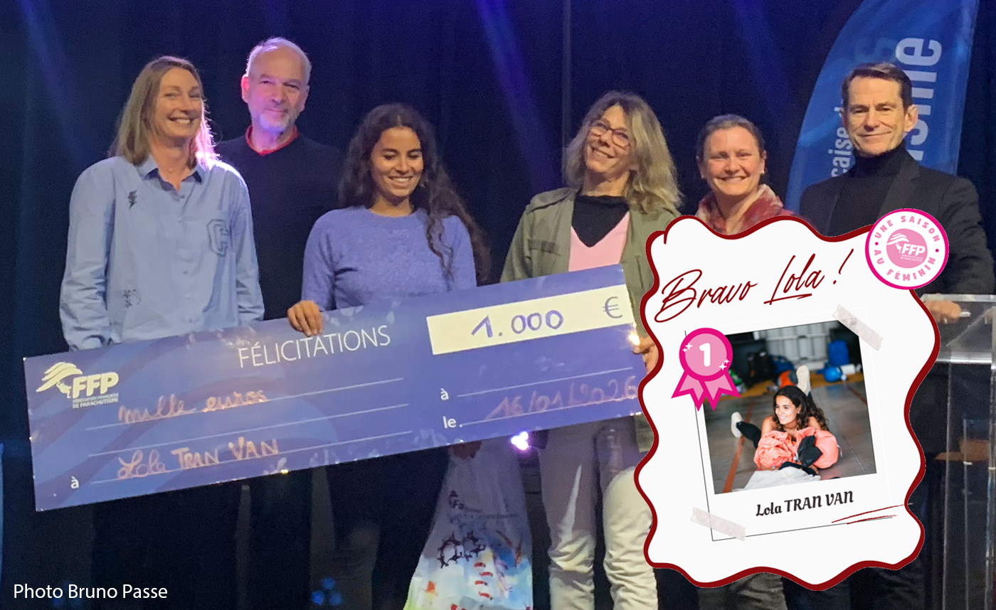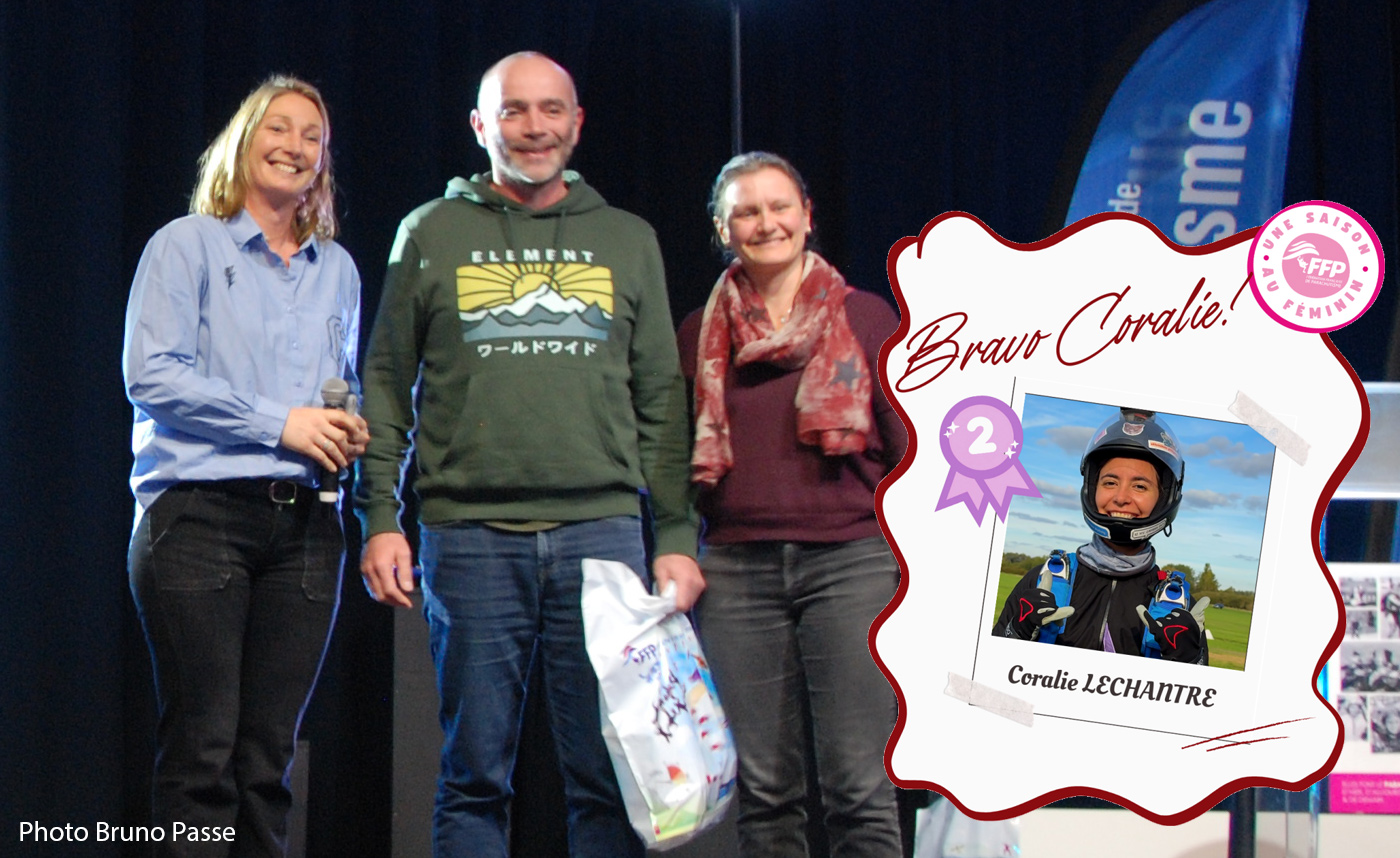 C'est Lola Tran Van (Parachute Club d’Aix) qui gagne le concours, suivie de Coralie Lechantre (EFP Lille Bondues) en deuxième position et Julie Thomas (DémenCiel Niort) en troisième. Bravo à elles !