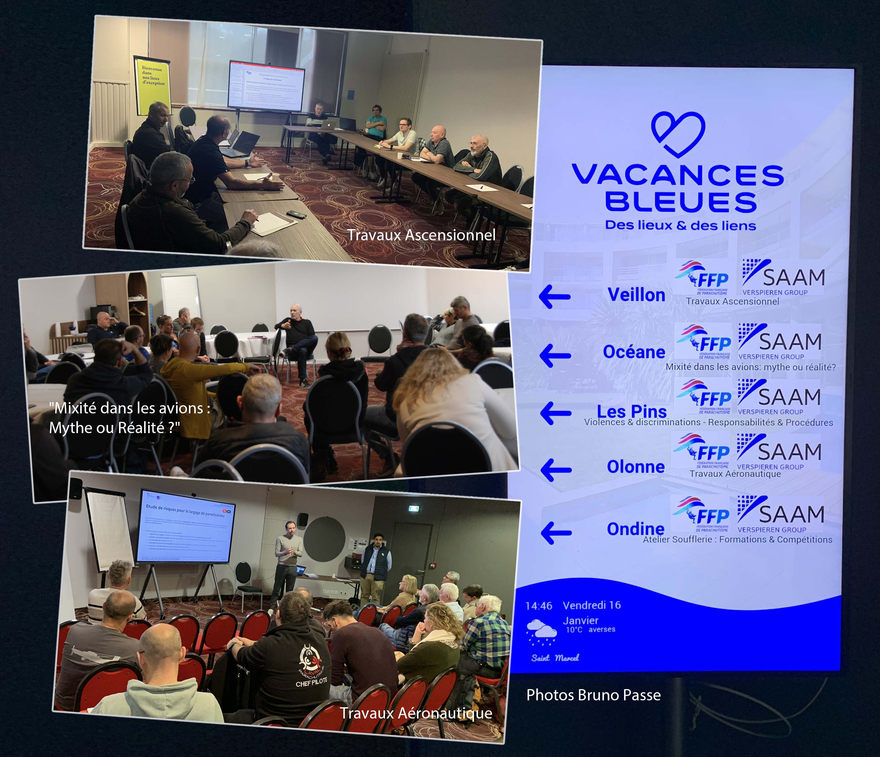Le samedi après-midi, les 200 participants avaient de nouveau rendez-vous tous ensemble en salle plénière pour un dernier programme en cinq volets : retour de l'atelier "technique et DT", violences sexistes et sexuelles dans le sport, aéronautique, Handifly et World Series, ascensionnel.