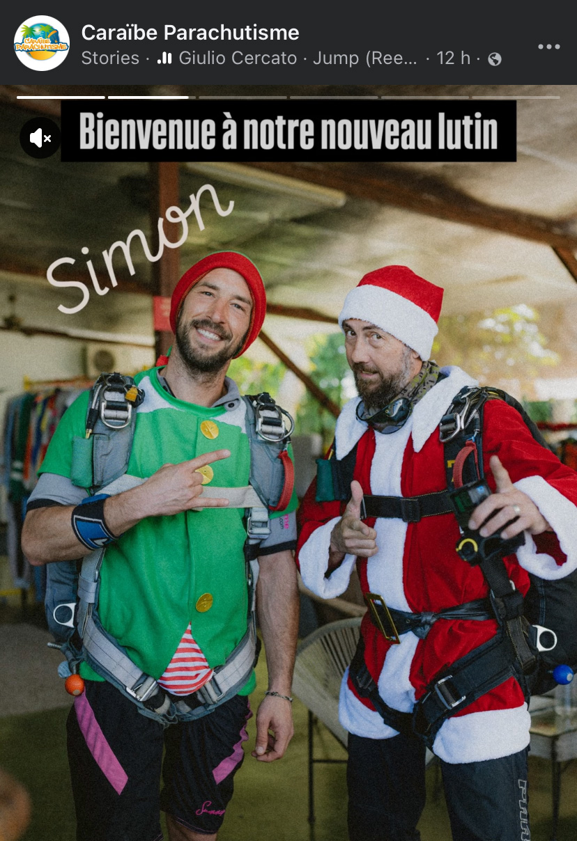Le père Noël va passer aussi en Guadeloupe ! Et chez Caraïbe Parachutisme, il entraîne aussi un des lutins. Cliquer sur l'image pour voir la vidéo.