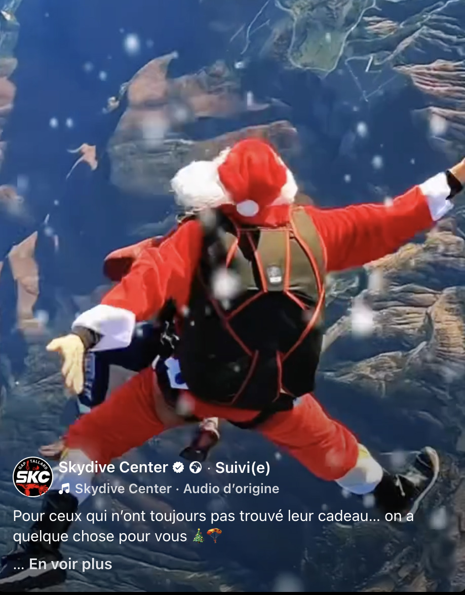 Vous aussi vous avez réussi à capturer des images du père Noël en vol ou en parachute ? Partagez les dans le groupe ParaMag Bonjour ou en commentaire sur notre page Facebook !