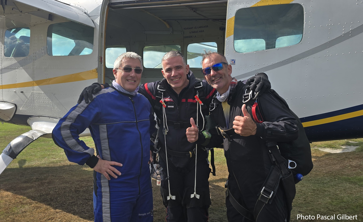 Embarquement dans le Caravan pour (de gauche à droite) Manuel Ulibarri, Stéphane Saison et Mike Borges. Photo Pascal Gilbert
