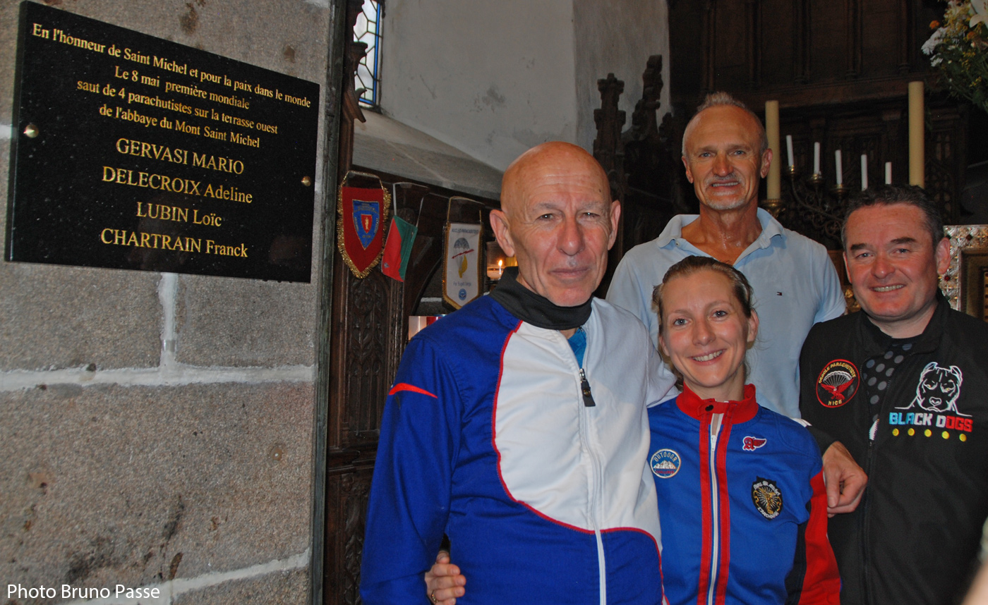 Elle a également revêtu une dimension mémorielle en rappelant l’exploit exceptionnel du 8 mai 2025, lorsque les quatre parachutistes Mario, Adeline, Franck et Loïc ont accompli ce saut historique sur la terrasse ouest de l’abbaye du Mont-Saint-Michel. Vos noms resteront à jamais gravés sur la plaque inaugurée dans l’église Saint-Pierre. Un souvenir vibrant qui donne encore plus de sens à notre aventure commune.