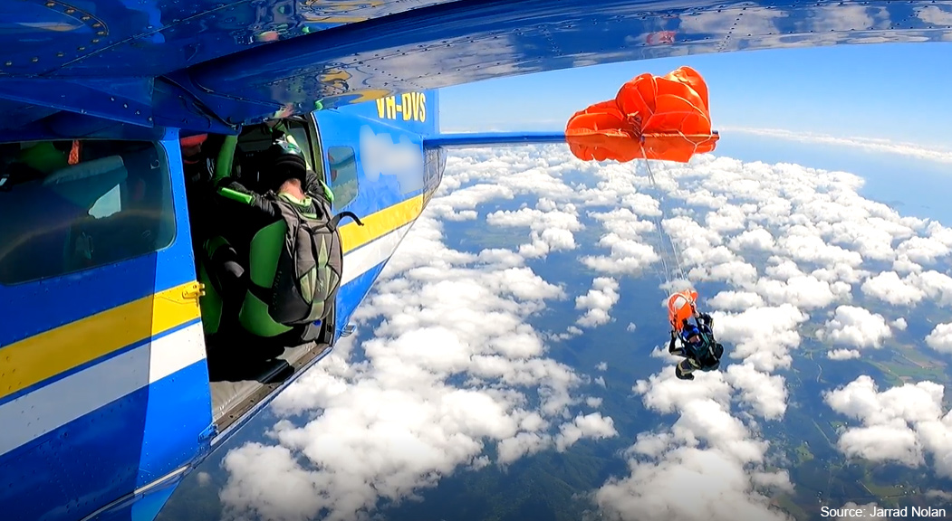 Un pilote a dû effectuer d'importantes manœuvres pour maintenir son avion - un Cessna Caravan - en vol après que le parachute de secours d'un parachutiste se soit accroché à la queue de l'appareil lors d'un saut au-dessus de l'aéroport de Tully, dans l'extrême nord du Queensland.