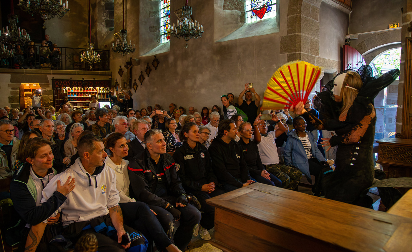 L'événement, qui visait à mettre en lumière la lutte contre les psychotraumatismes chez les sapeurs-pompiers, était organisé dans la continuité de la première mondiale du saut de quatre parachutistes - Mario Gervasi, Adeline Delecroix, Loïc Lubin, Franck Chartrain - sur la terrasse ouest de l’abbaye, le 8 mai dernier, au sujet duquel ParaMag a déjà publié un article intitulé "A genoux face à l'Archange".