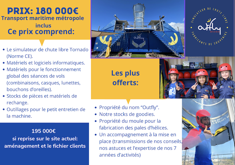Vends simulateur de chute libre Tornado (de 2015). Cause de nouveau projet de vie.