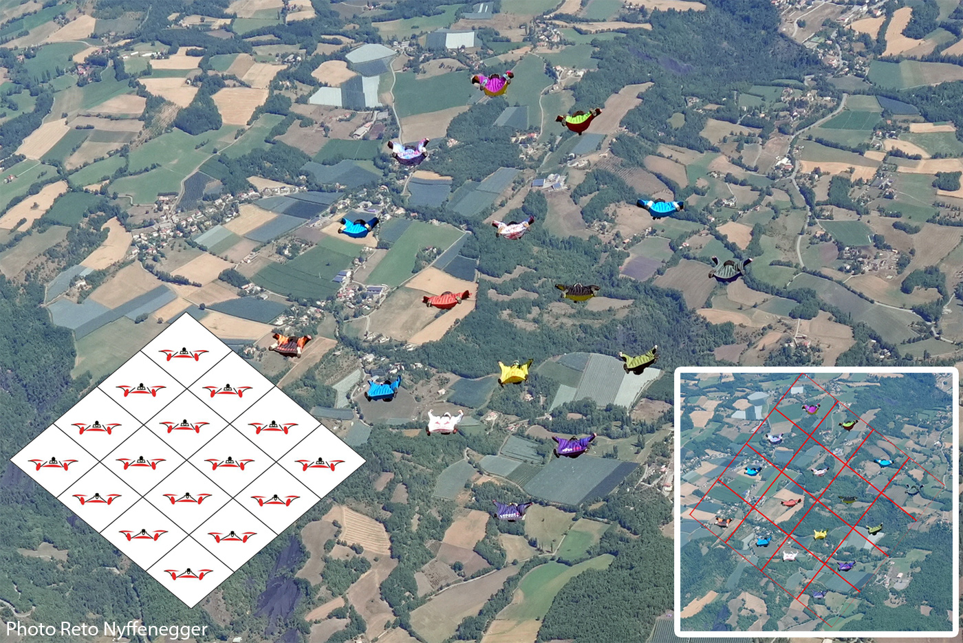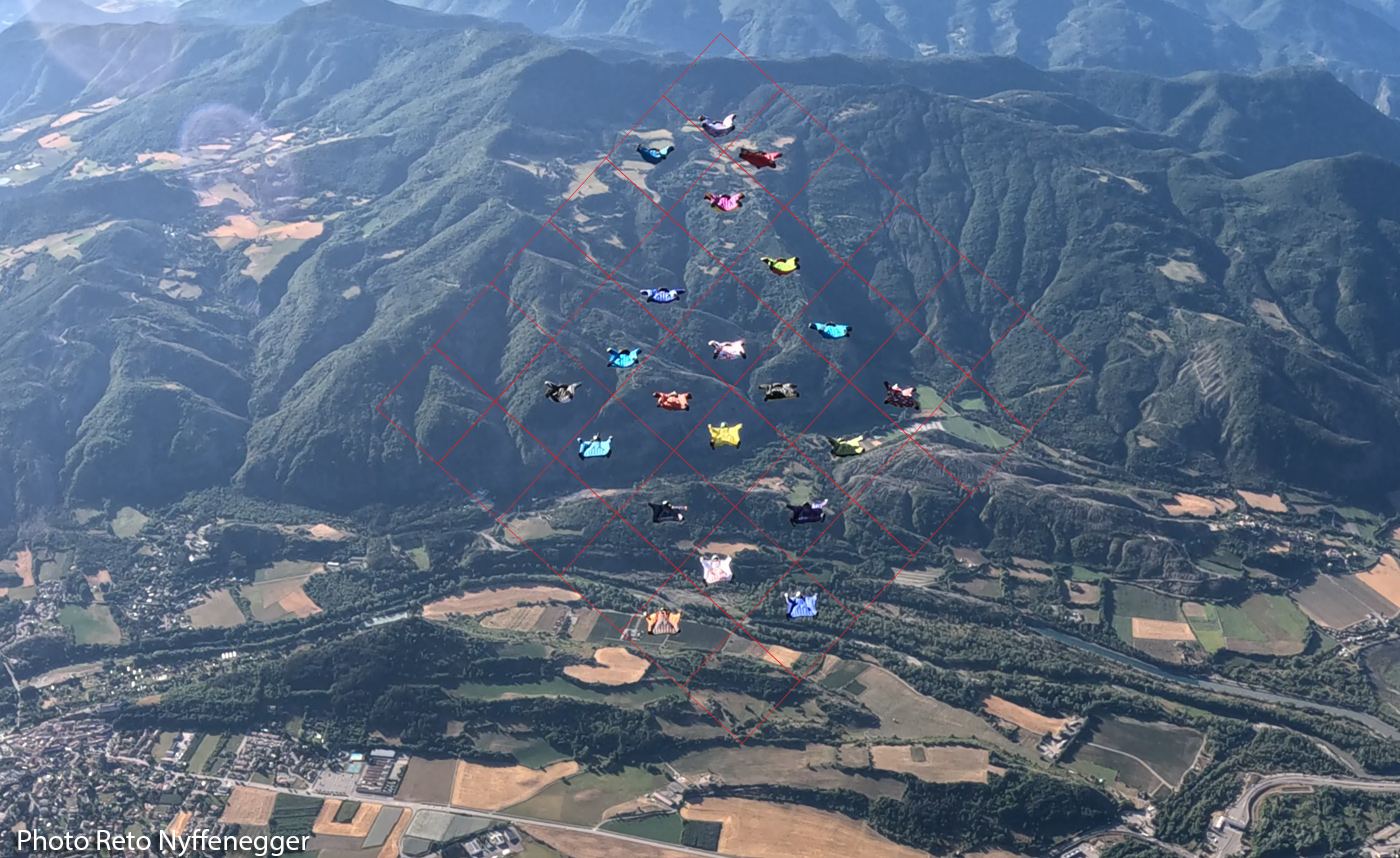 Avant cela, il n'existait qu'une seule catégorie FAI en matière de grande formation en wingsuit : le vol en formation horizontale. Toutes ces performances, qu'elles soient horizontales, verticales ou séquentielles, sont évaluées, jugées et éventuellement validées au moyen d'une grille formatée par des cases.