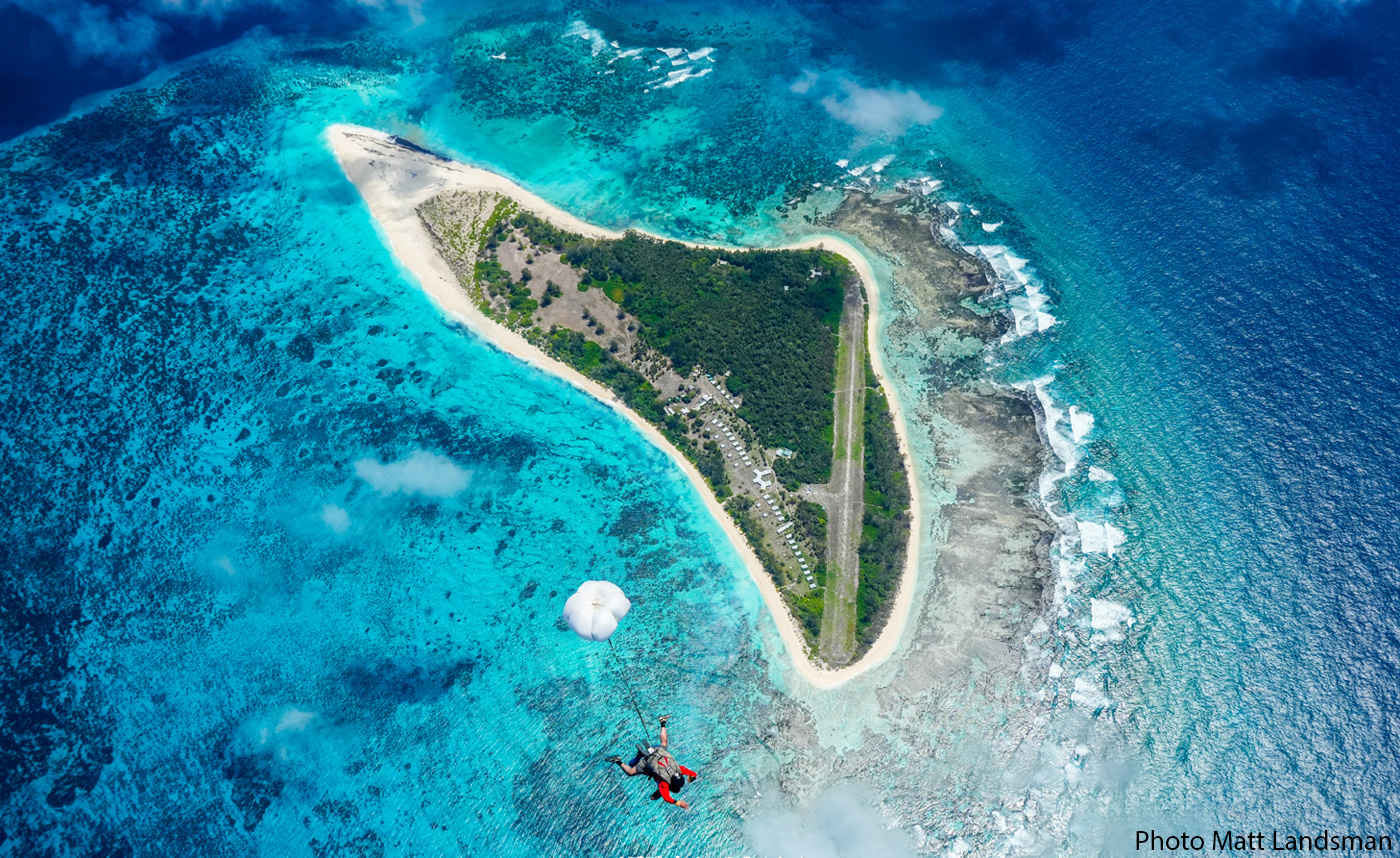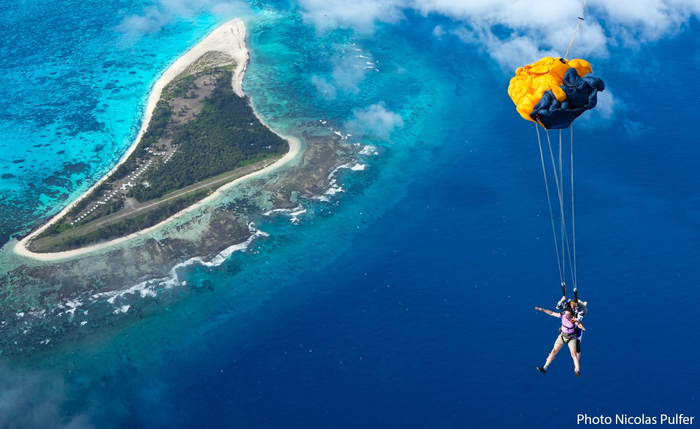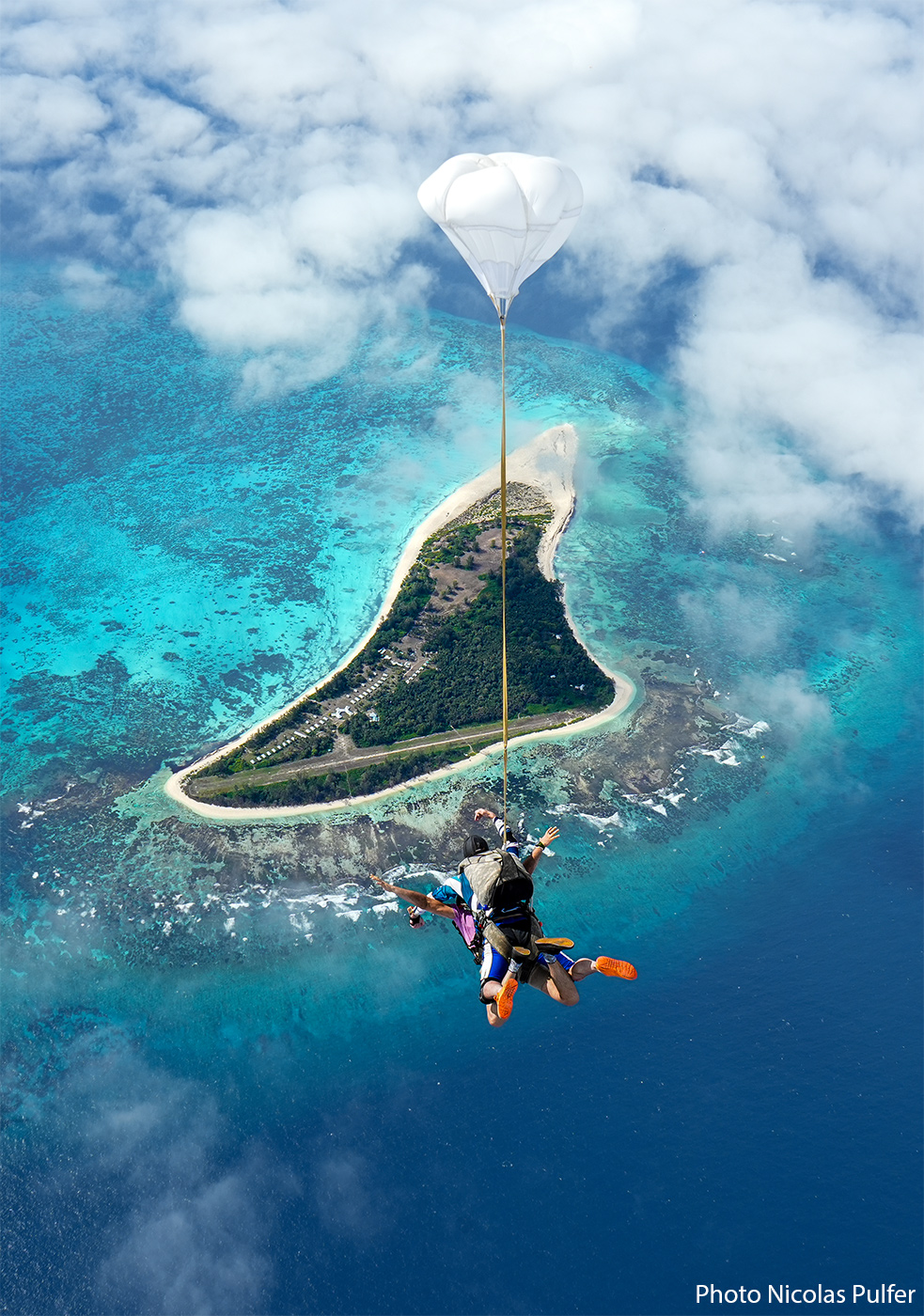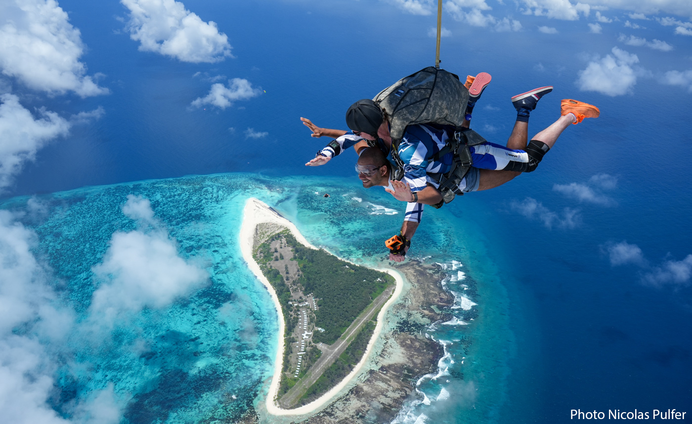 - et, cerise sur le gâteau, un saut en parachute en tandem à 12 000 pieds au-dessus de Bird Island.