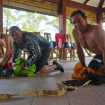 - Pliage des parachutes dans un des bâtiments principaux de l’île.