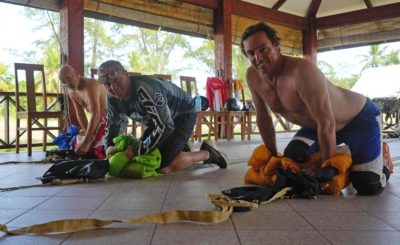 Le pliage des parachutes pour les rotations suivantes se faisait dans l’un des bâtiments principaux de l’île, où un repas et des rafraîchissements étaient préparés par une équipe locale.