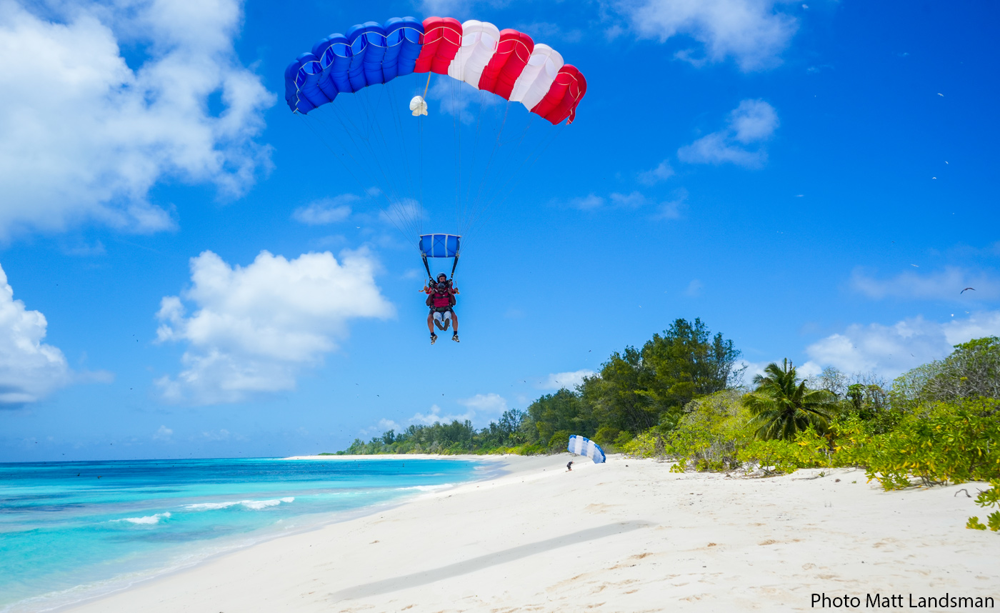 Les Seychelles comptent des îles d’une beauté particulière. C'est sur une de ces îles que Herman Landsman et Dario Jotti (organisateurs de sauts bien connus en Europe et à l'international), en partenariat avec l'agence Go Beep Beep, ont organisé un événement spécial, où les sauts en tandem ont pris une dimension exotique exceptionnelle.