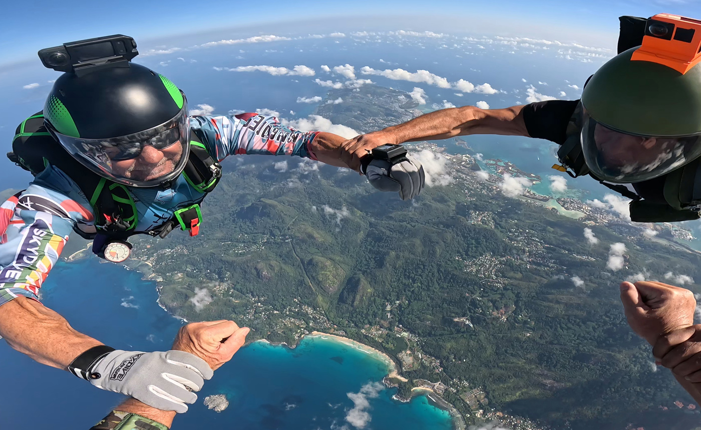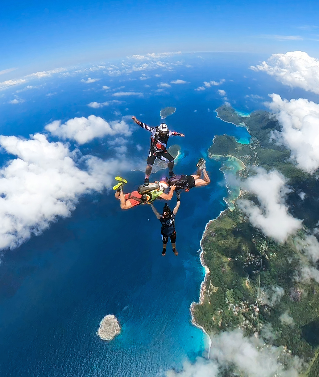Tout a commencé dans la spontanéité : un ami de la communauté parachutiste m'a parlé d'un événement aux Seychelles, et dès que j'ai vu les photos des zones d'atterrissage sur des plages immaculées et des îlots entourés d'eau turquoise, j'ai su que je devais y aller.