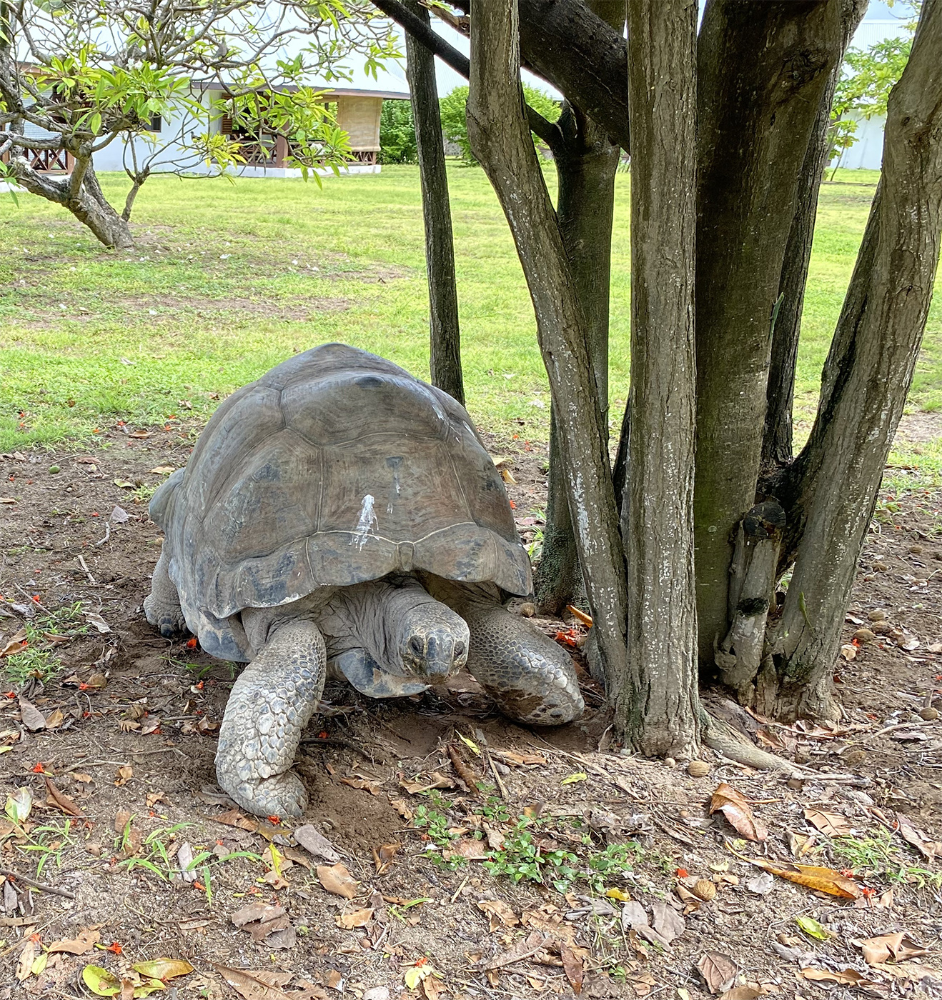 Atterrir sur le sable doux et poudreux semblait irréel, mais la vraie magie a commencé après l'atterrissage. Des milliers d'oiseaux nous ont entourés, leurs cris résonnant comme pour nous accueillir sur leur île. Ils nous ont escortés jusqu'au camion ouvert qui nous attendait pour nous emmener au restaurant et au bar de l'île. Et comme si les oiseaux ne suffisaient pas, notre court trajet a été agrémenté par la vue de tortues géantes qui vivent sur l'île depuis des siècles.