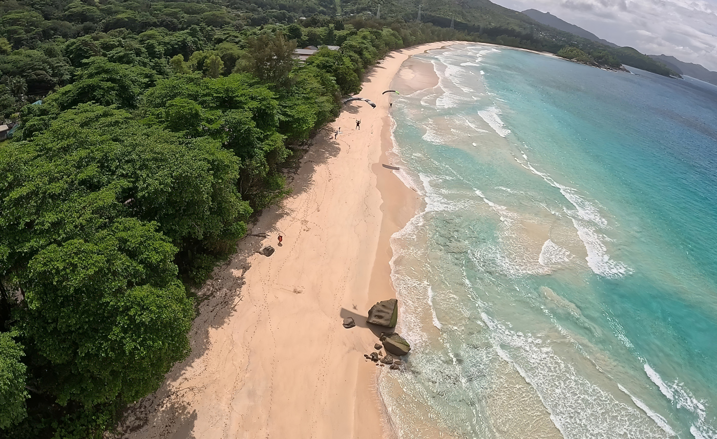 Les jours suivants nous ont ramenés à Mahé, l'île principale des Seychelles. Les autres sauts devaient se faire sur une plage tout aussi magnifique, à Grand Anse. Son étendue de sable toute en longueur et ses marées changeantes ont ajouté un nouveau défi, rendant chaque approche un peu plus technique et chaque atterrissage encore plus gratifiant.