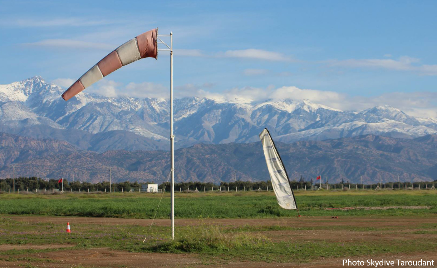 Skydiving Taroudant se trouve à côté d'une ville aux vieux remparts, dont on pense qu'elle devrait regorger de touristes, mais qui n'en regorge pas. La zone de saut est ouverte pendant quatre mois en hiver, lorsque l'avion venu de France est disponible. C'est une situation gagnant-gagnant pour toutes les parties concernées : la partie marocaine qui bénéficie d'un avion performant, la partie française dont l'avion est utilisé au lieu de rester dans un hangar en France, et les parachutistes français qui disposent d'un endroit très agréable pour s'évader pendant les mois très froids en Europe. Ces mois durant lesquels il fait assez frais en Afrique du Nord pour que les Marocains s'emmitouflent au sol et dans les airs. C'est vraiment un endroit très agréable pour faire du parachutisme à cette époque de l'année.