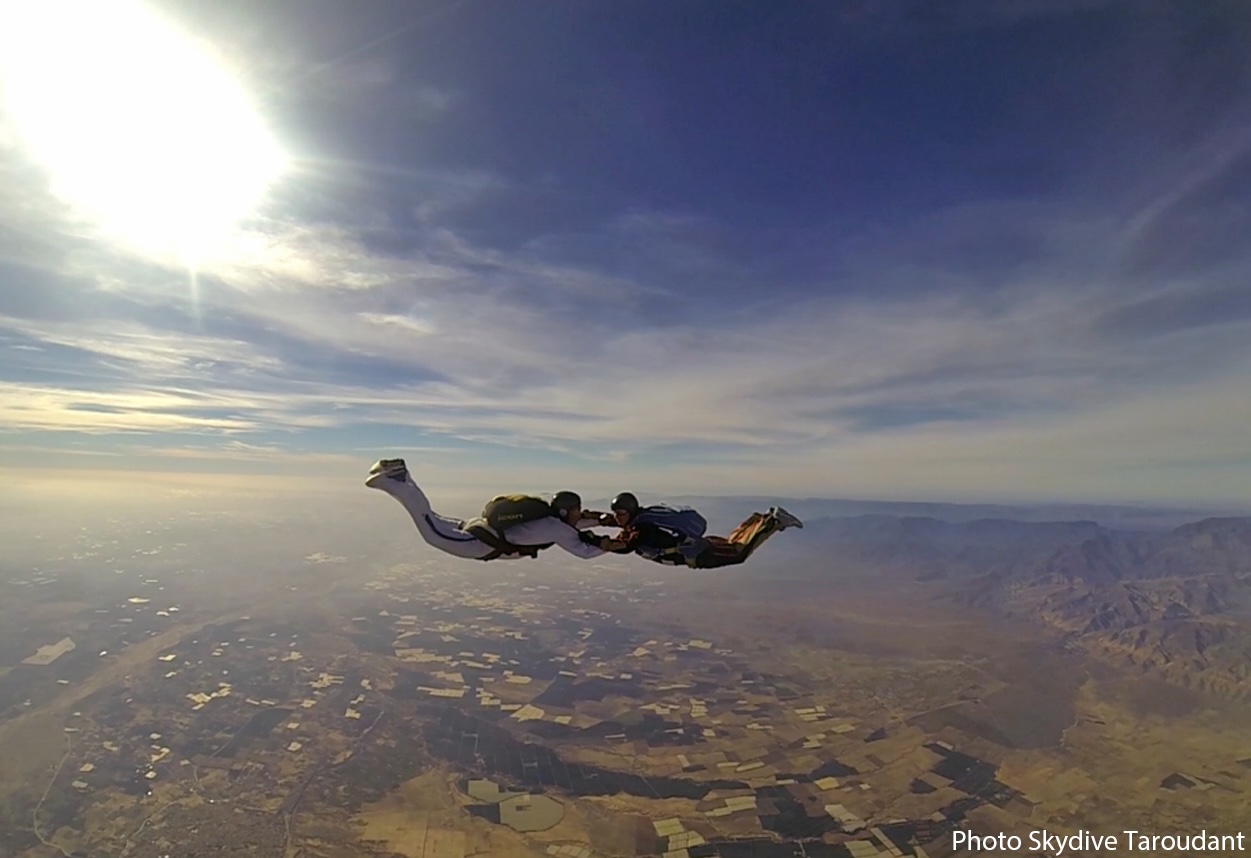 Rachid Moumy : C'était dans les années 1980, durant certaines périodes, le fonctionnement n'était pas en continu. En ce qui concerne notre équipe actuelle, nous avons commencé en 2014, on a relancé l'activité en partenariat avec Paris Jump, et sous la dénomination de Skydiving Taroudant. Nous avions fonctionné avec le Pilatus de Paris Jump et une partie de son staff. Pour cette première année, nous avions un agrément FFP et nous avons fait un total de 4500 sauts en 2 mois. Pour un départ, c'était encourageant.