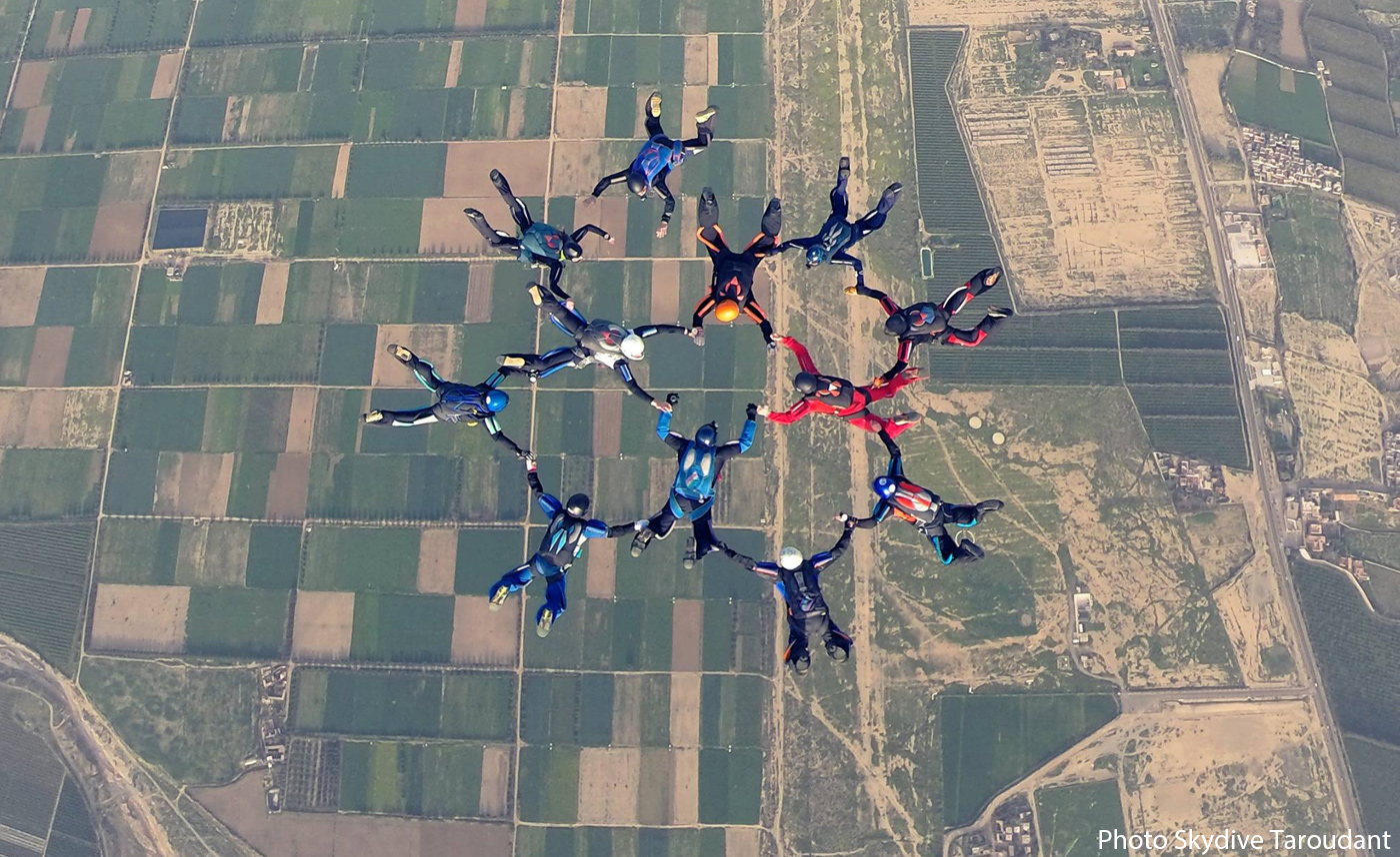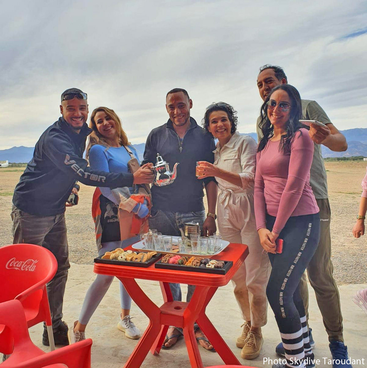 Rachid Moumy : C'était dans les années 1980, durant certaines périodes, le fonctionnement n'était pas en continu. En ce qui concerne notre équipe actuelle, nous avons commencé en 2014, on a relancé l'activité en partenariat avec Paris Jump, et sous la dénomination de Skydiving Taroudant. Nous avions fonctionné avec le Pilatus de Paris Jump et une partie de son staff. Pour cette première année, nous avions un agrément FFP et nous avons fait un total de 4500 sauts en 2 mois. Pour un départ, c'était encourageant.