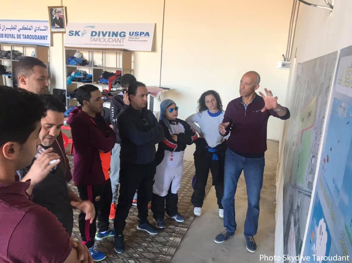 Nous avons commencé par passer nos qualifications de moniteurs USPA (N.D.L.R. : Fédération américaine), ce qui nous a ensuite permis de fonctionner en tant qu'entité 100% marocaine, tout en appliquant le cahier des charges de l'USPA. Cela s'appliquait à la pratique du tandem et de l'école en chute libre, l'AFF (N.D.L.R. : Méthode américaine équivalente de la PAC française). Nous sommes donc actuellement trois moniteurs USPA et de futurs moniteurs sont en formation.